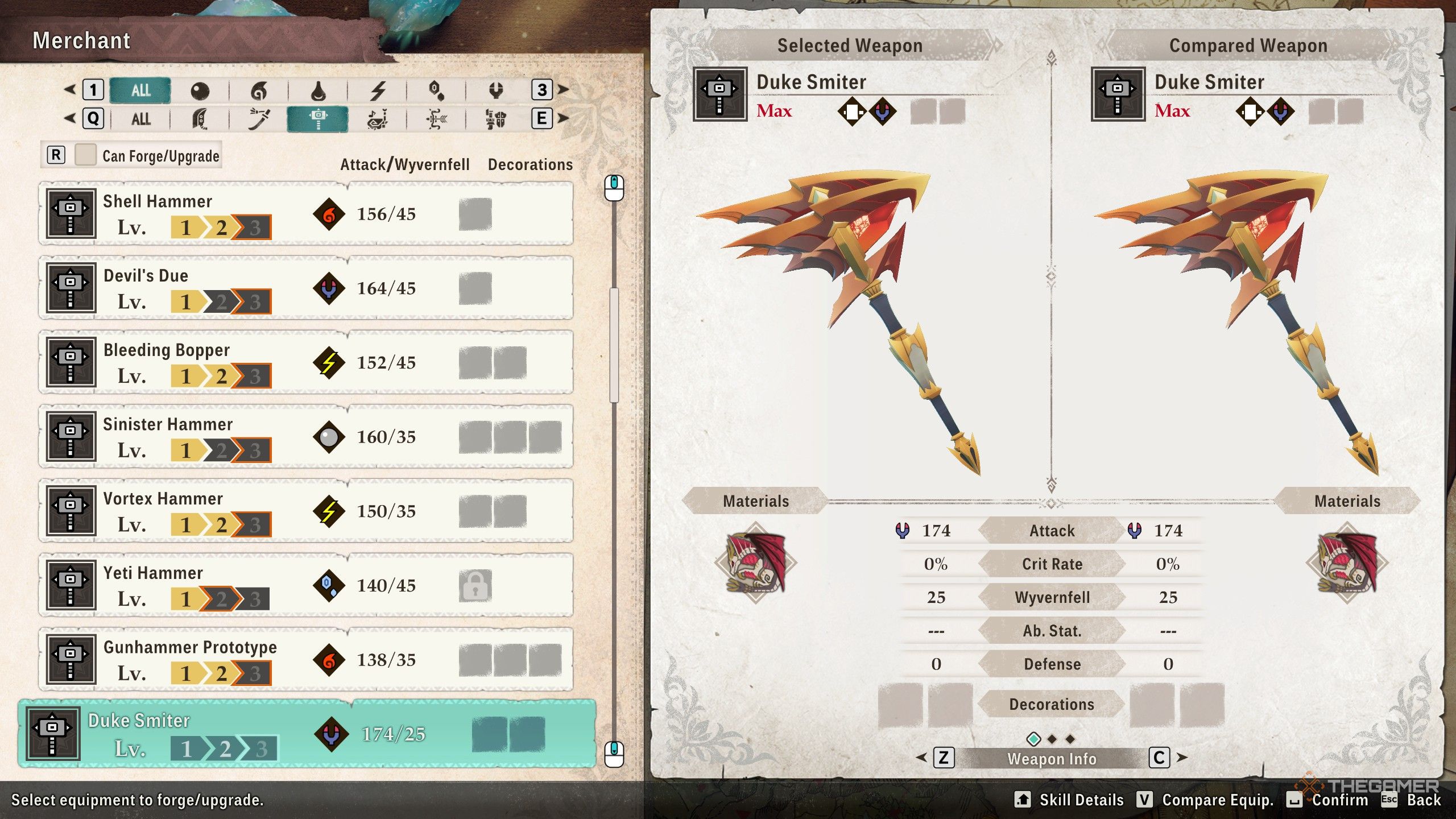 Меч «Истребитель Герцогов» наносит 174 урона элементом Dragon, плюс 25 урона Wyvernfell. Он также имеет два пустых слота для декораций, позволяющих настроить его и еще больше усилить его и без того впечатляющую силу.